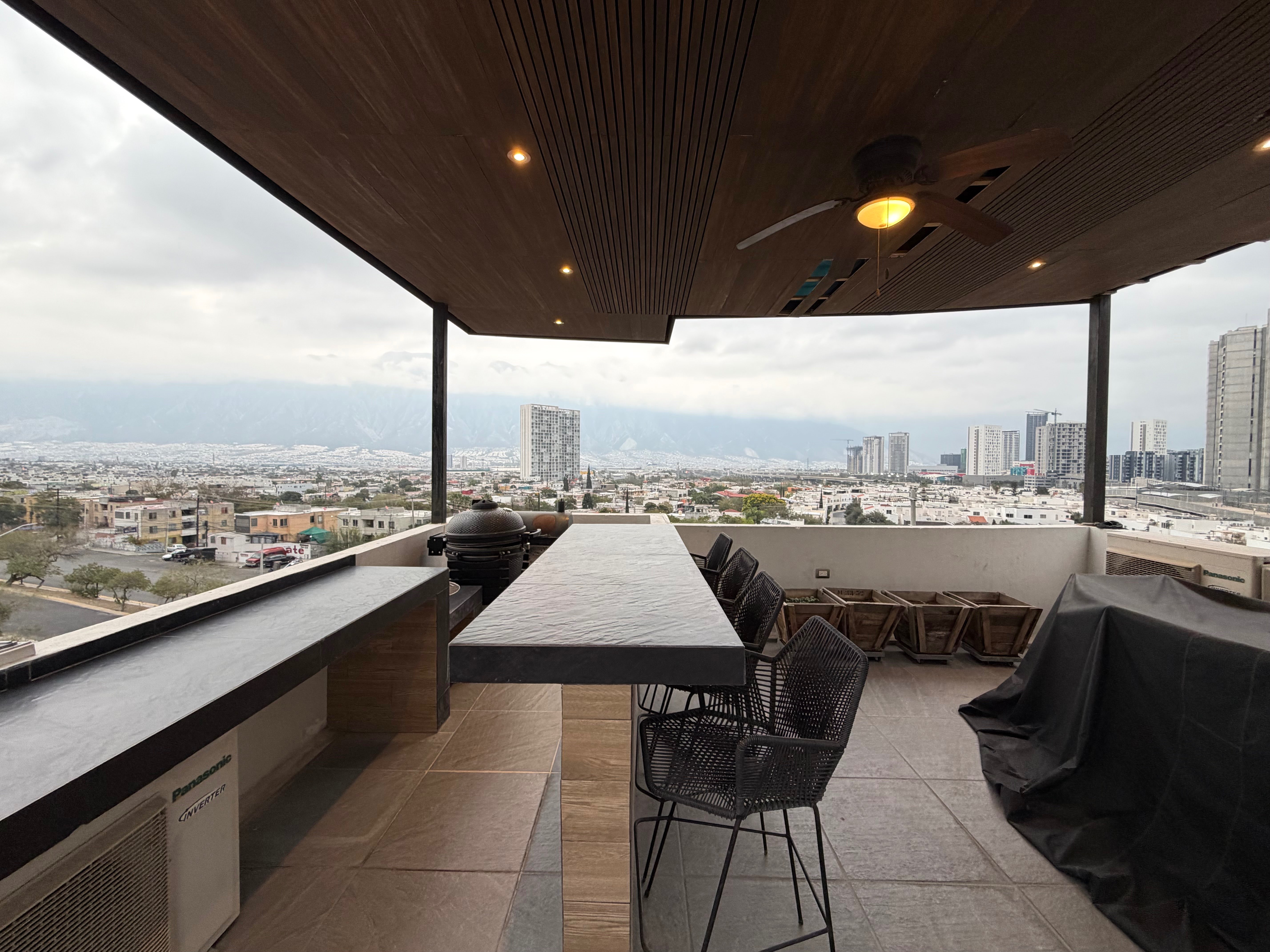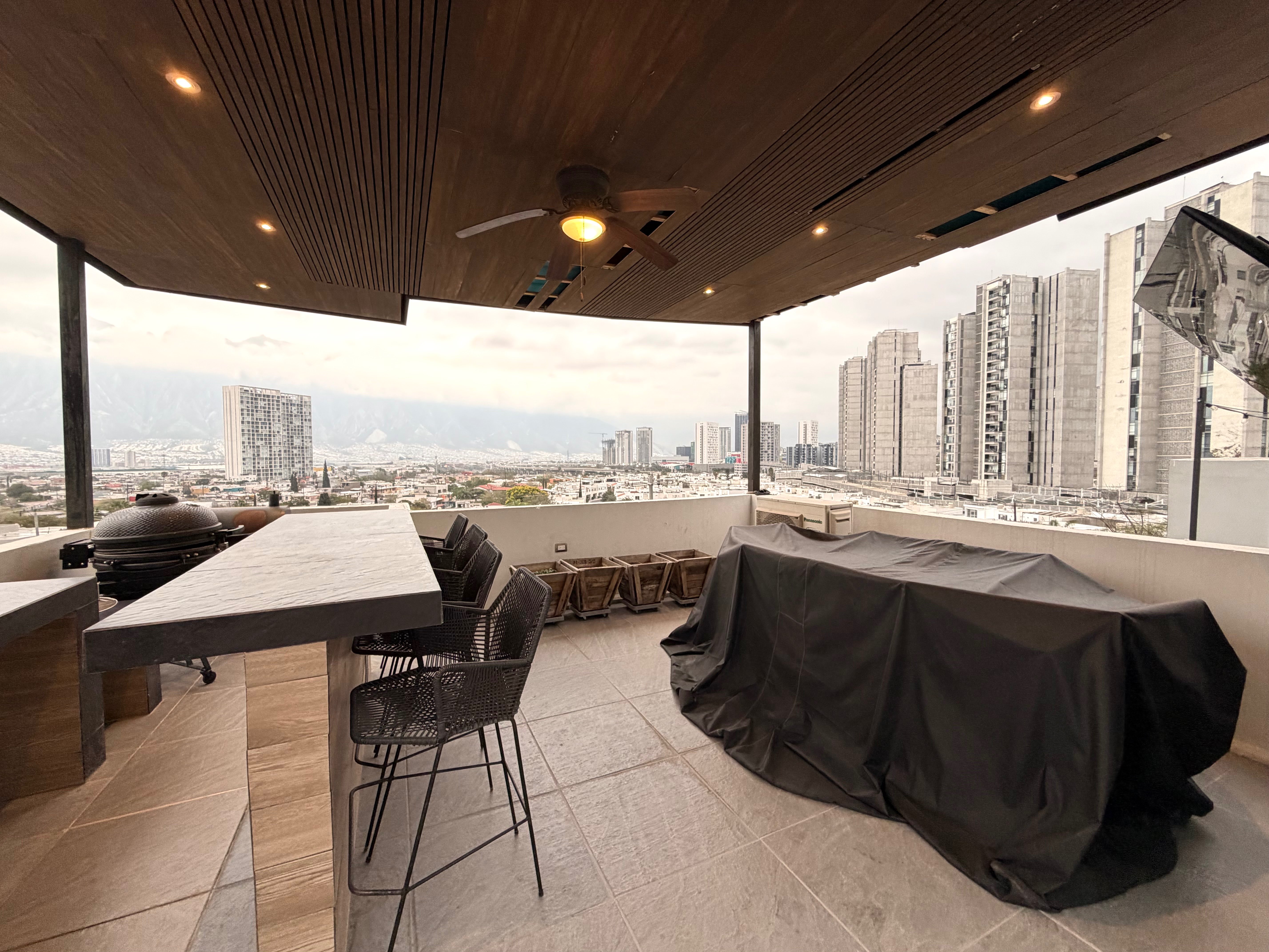 - Terraza con área de asador, con vistas increíbles a la ciudad y a las montañas, incluída la Huasteca